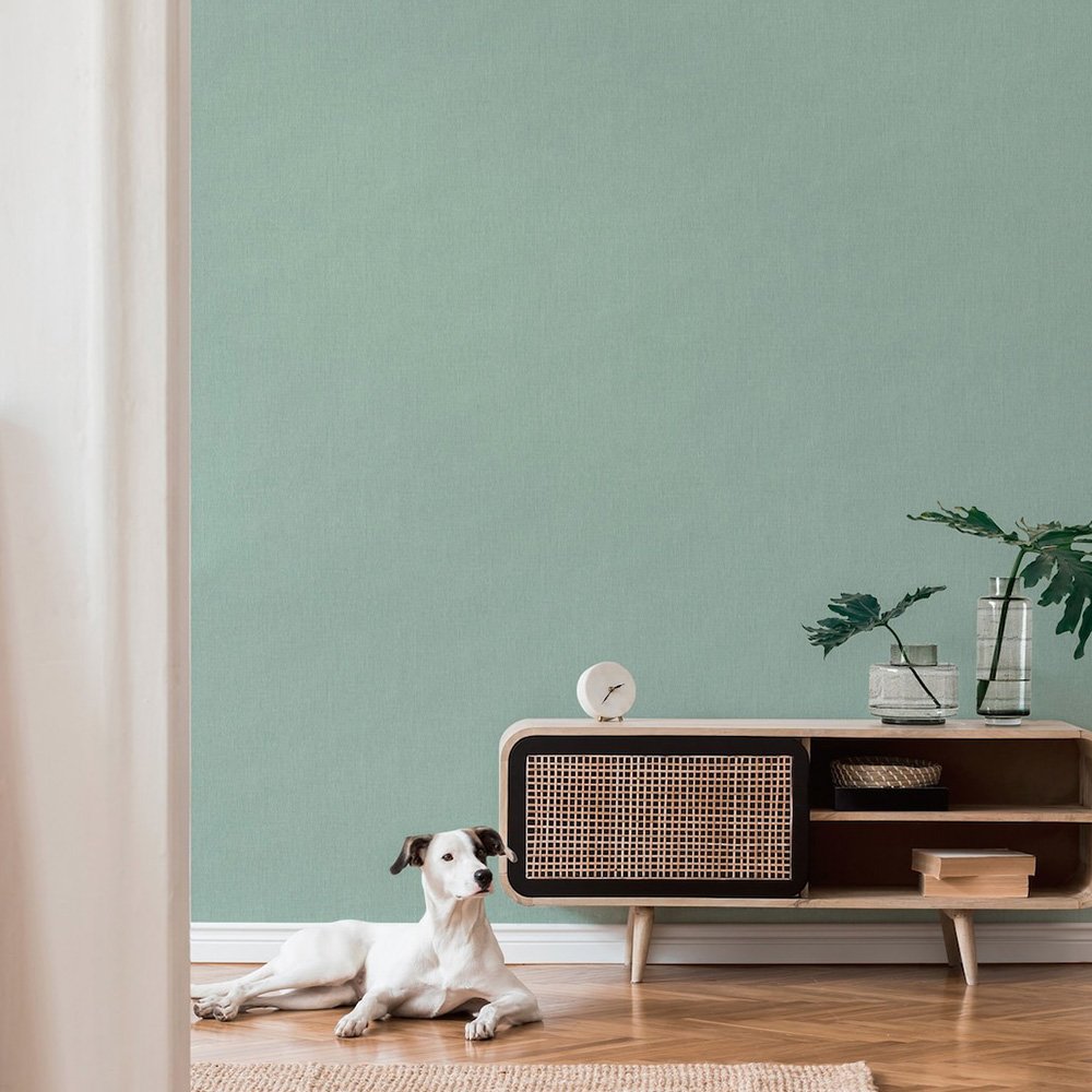 This wallpaper from the Stories of Life collection by livingwalls gives your four walls a stylish and modern ambience. The wallpaper is perfect for creative wall design if you want to give your rooms an individual touch. The non-woven wallpaper 39651-1 is plain mottled in a modern linen look in turquoise. Also discover the other wallpapers in this collection in our shop.