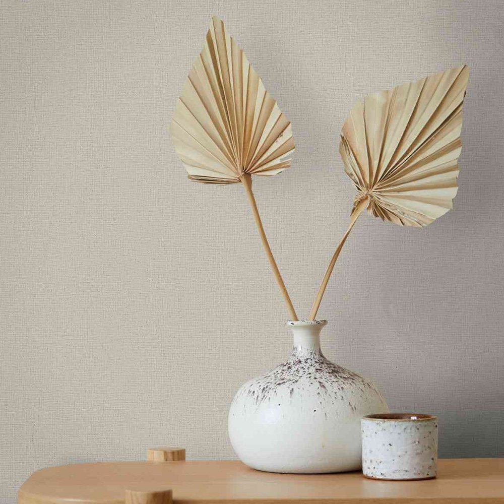 Non-woven wallpaper plain linen texture beige 82347