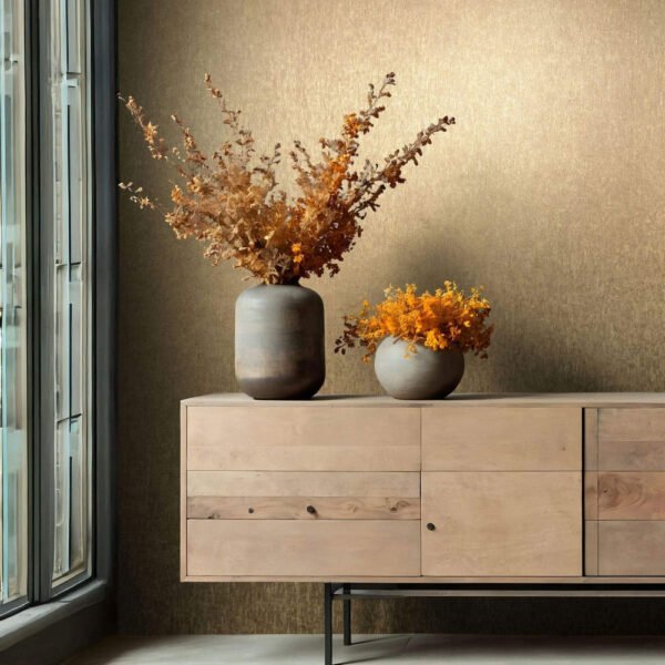 Long, bright nights of Nordic summer festivals and festive rituals are the inspiration for this wallpaper from the Ritus von Marburg collection. It creates a mystical atmosphere and brings the mysterious beauty of nature into your home. The non-woven wallpaper 35527 has a plain plaster look in a used look in gold with a metallic effect. Also discover the other wallpapers in this collection in our shop.
