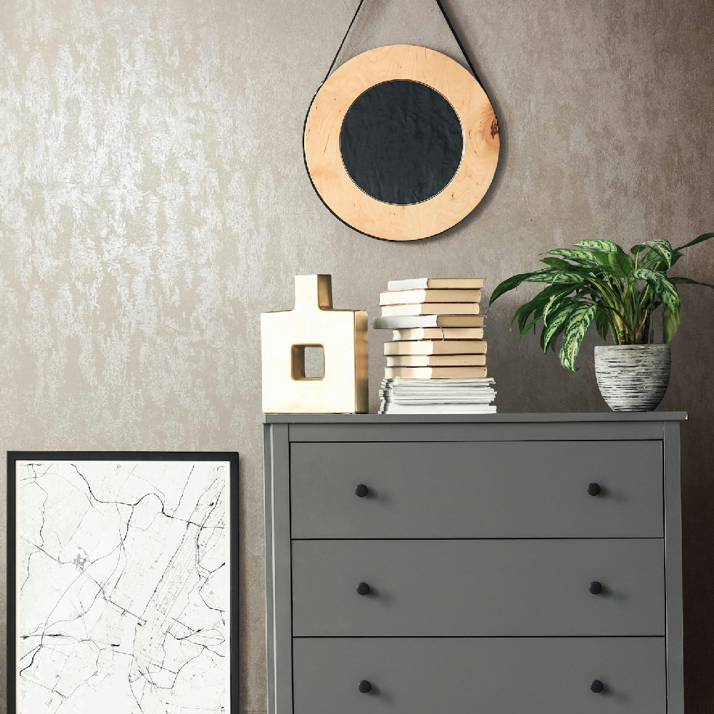 Immerse yourself in a world full of splendor and atmosphere of bygone times. With this wallpaper from Marburg from the City Romanca collection, you can bring the elegance and romance of historical palaces into your home. The non-woven wallpaper. 35133 shows a monochrome concrete look with a used look in beige and grey tones with a shiny effect. Also discover the other wallpapers in this collection in our shop.