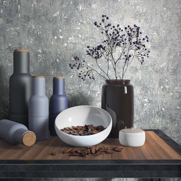 Bring a breath of fresh air into your home with this non-woven wallpaper from the Jackie collection by Novamur. Inspired by the metropolises of Bahia, Riga, Lisbon and New York, the designs in the collection pick up on a wide variety of trends. The wallpaper 82369 has a concrete effect in used look in white and grey tones with a metallic effect in pearl. Discover the entire Novamur wallpaper collection in our shop now.