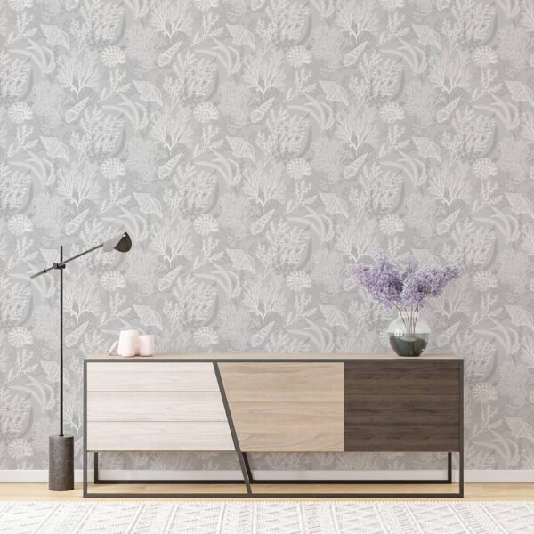 With this wallpaper from the Leyla collection by Novamur, you can easily add elegant accents to your home. The wallpaper combines high-quality materials with a modern and stylish character to give your rooms a harmonious atmosphere. The non-woven wallpaper 81687 depicts an underwater world with shells and seaweed in shades of grey and white. Discover the other wallpapers from this collection in our shop.