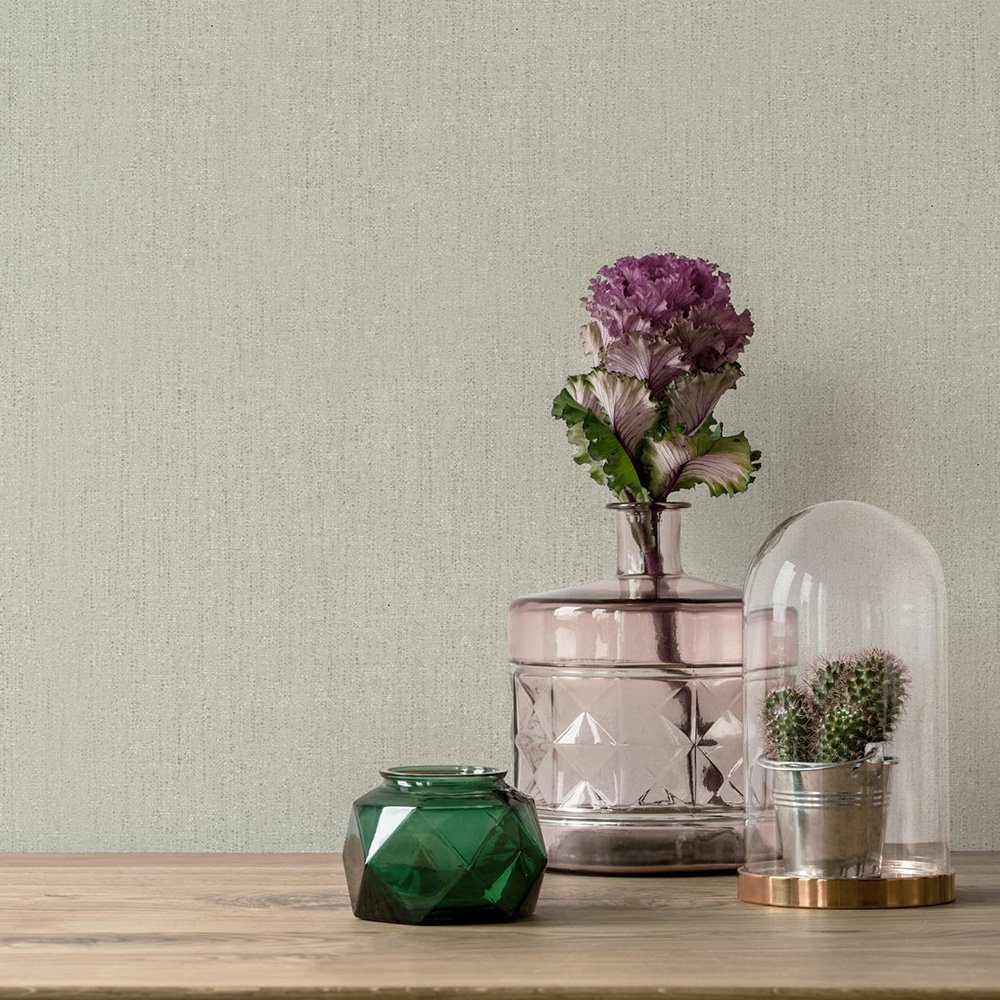 This wallpaper from the Leyla collection by Novamur combines urban chic and Mediterranean lightness and conjures up works of art on your walls. With the wallpaper you can easily bring the lifestyle of Santorini or Miami straight into your home. The non-woven wallpaper 82448 is plain with a texture in cream and green tones. Also discover the other wallpapers in this collection in our shop.