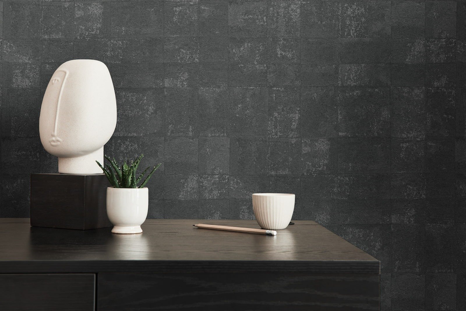 This wallpaper from the Stories of Life collection by livingwalls gives your four walls a stylish and modern ambience. The wallpaper is perfect for creative wall design if you want to give your rooms an individual touch. The non-woven wallpaper 39671-4 shows a used-look tile motif in black with a metallic effect in silver. Also discover the other wallpapers in this collection in our shop.