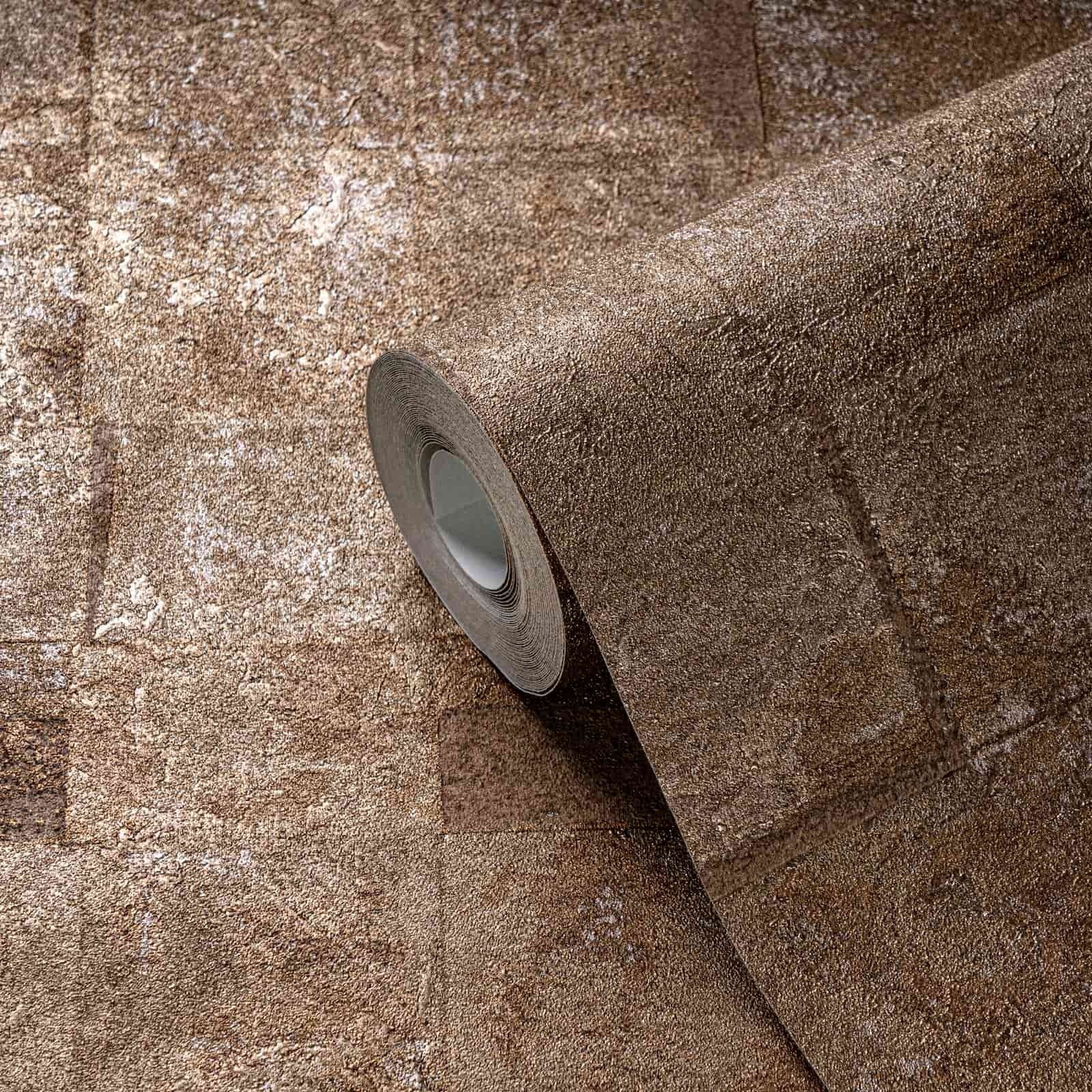 This wallpaper from the Stories of Life collection by livingwalls gives your four walls a stylish and modern ambience. The wallpaper is perfect for creative wall design if you want to give your rooms an individual touch. The non-woven wallpaper 39671-1 shows a used-look tile motif in gold and brown tones with a metallic effect. Also discover the other wallpapers in this collection in our shop.