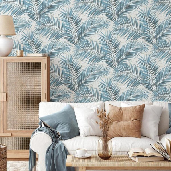 With this wallpaper from the Cameo collection by Erismann, you can give your home a clean, timeless elegance with an inviting atmosphere. It is characterized by a combination of understated colours and a subtle, textured design. The non-woven wallpaper 10531-19 features a tropical leaf pattern with ferns in white and blue tones. Discover the other wallpapers from this collection in our shop.