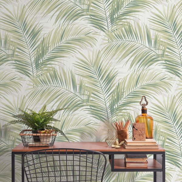 With this wallpaper from the Cameo collection by Erismann, you can give your home a clean, timeless elegance with an inviting atmosphere. It is characterized by a combination of understated colours and a subtle, textured design. The non-woven wallpaper 10531-07 features a tropical leaf pattern with ferns in white and green tones. Discover the other wallpapers from this collection in our shop.