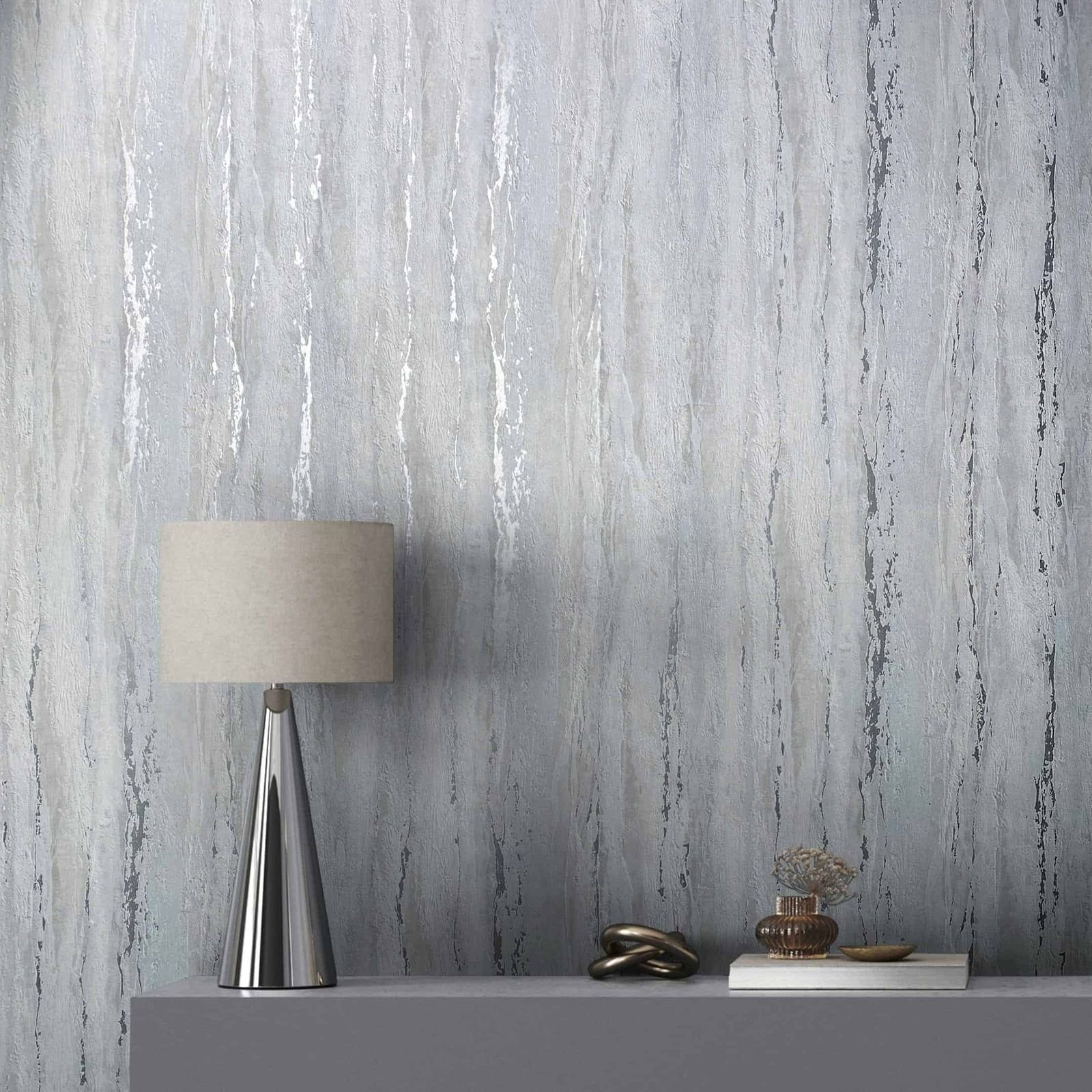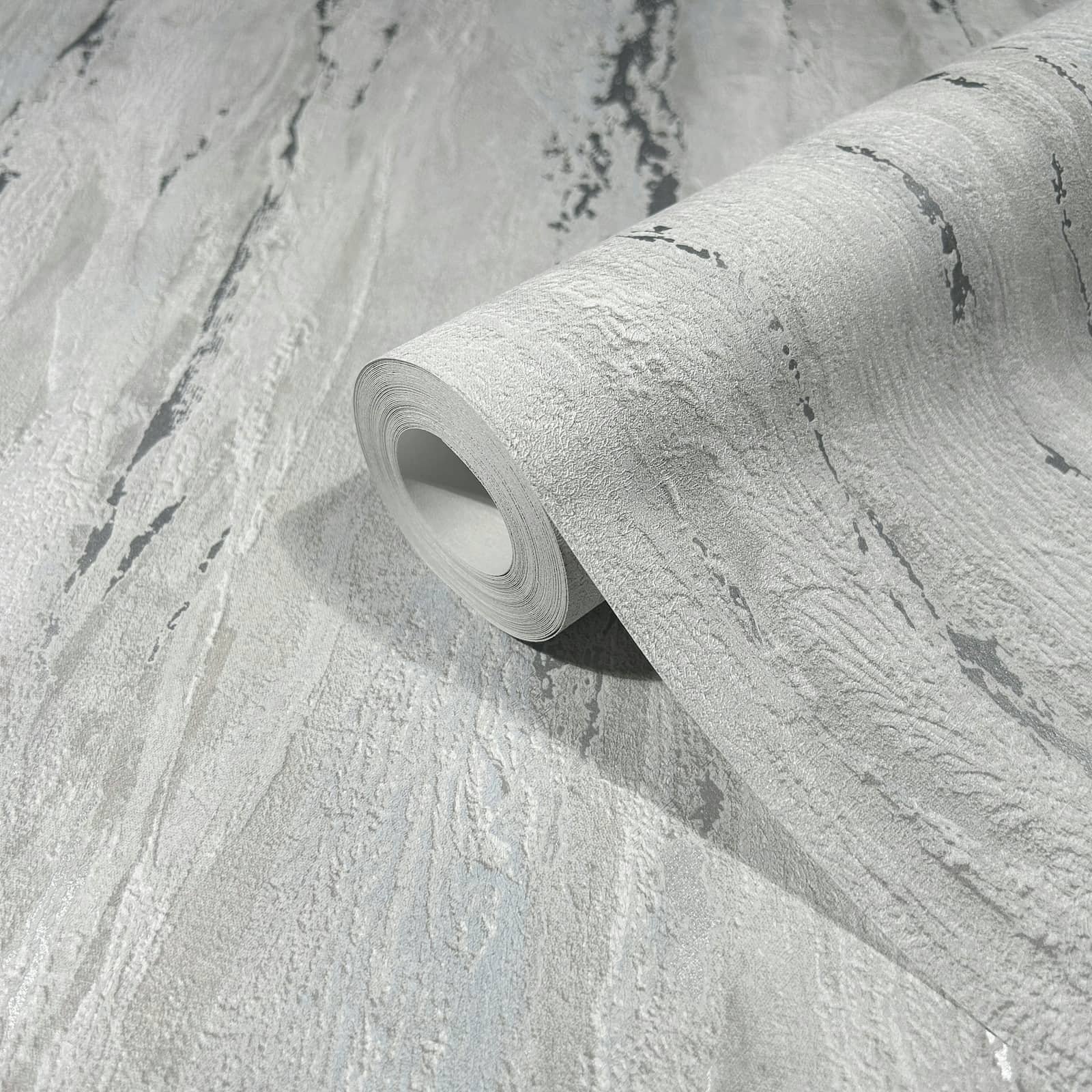 Immerse yourself in a world full of splendor and atmosphere of bygone times. With this wallpaper from Marburg from the City Romanca collection, you can bring the elegance and romance of historical palaces into your home. The non-woven wallpaper. 35160 has a modern shabby-style plaster look in grey and blue tones with a metallic effect in silver. Also discover the other wallpapers in this collection in our shop.