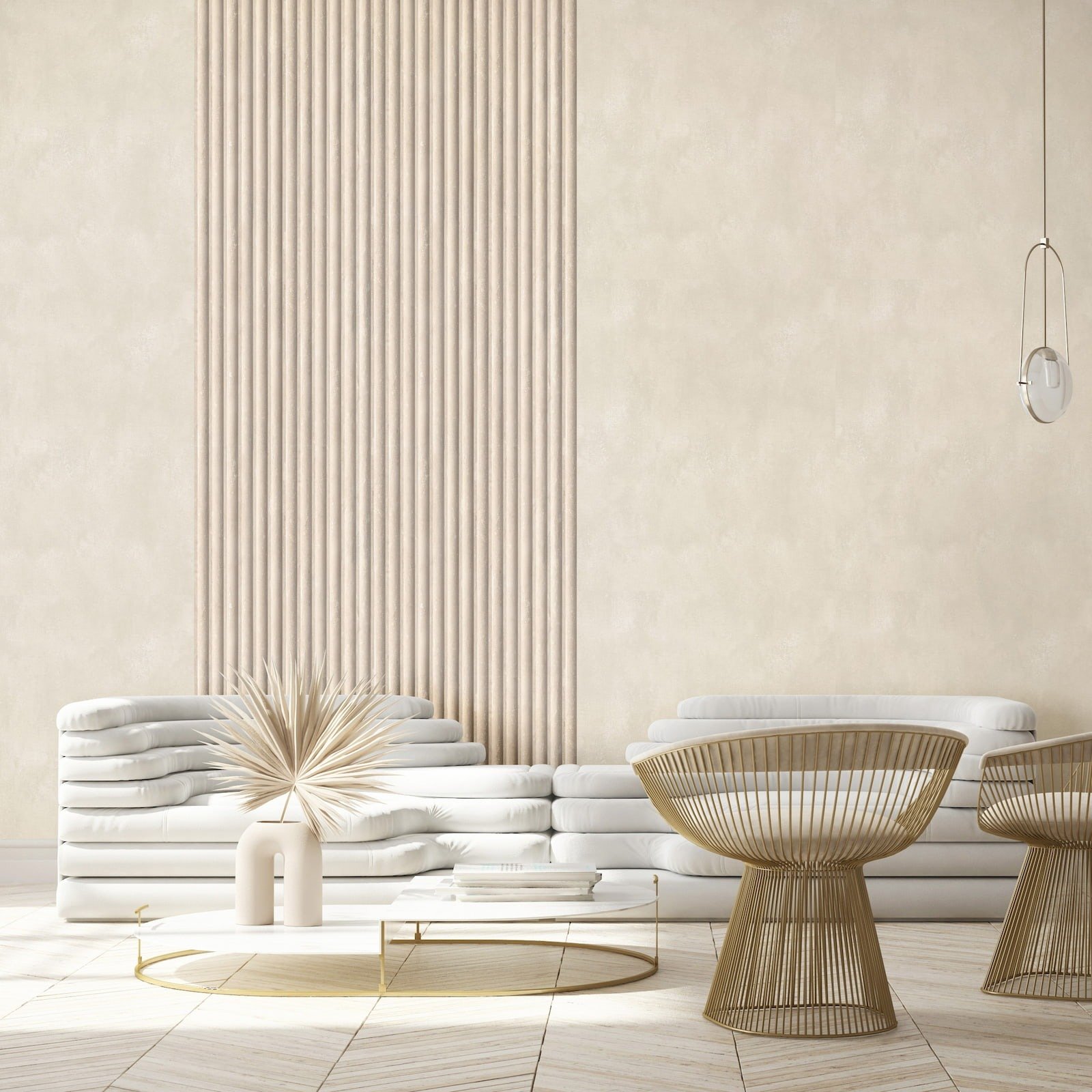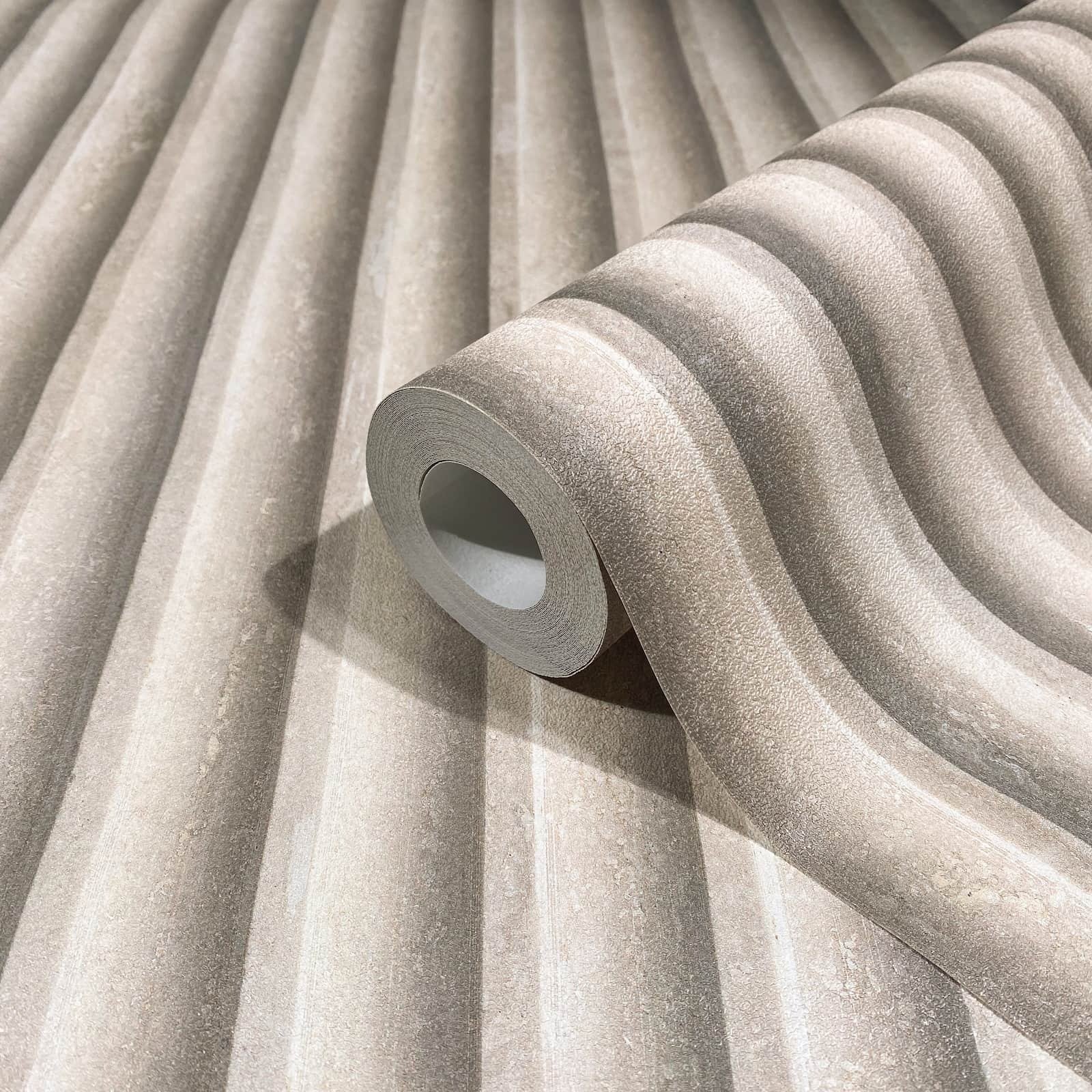 This wallpaper from the Leyla collection by Novamur combines urban chic and Mediterranean lightness and conjures up works of art on your walls. With the wallpaper you can easily bring the lifestyle of Santorini or Miami straight into your home. The non-woven wallpaper 81697 shows a motif with stripes in a concrete look that are reminiscent of panels in beige and grey tones. Also discover the other wallpapers in this collection in our shop.