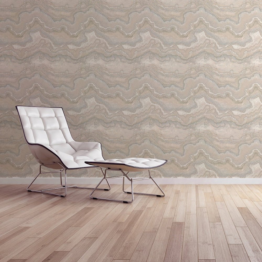 This wallpaper from the Stories of Life collection by livingwalls gives your four walls a stylish and modern ambience. The wallpaper is perfect for creative wall design if you want to give your rooms an individual touch. The non-woven wallpaper 39659-6 shows an abstract wave pattern in a marble look in beige tones with a metallic effect in silver. Also discover the other wallpapers in this collection in our shop.