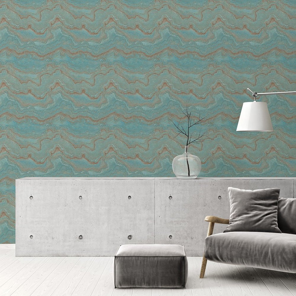 This wallpaper from the Stories of Life collection by livingwalls gives your four walls a stylish and modern ambience. The wallpaper is perfect for creative wall design if you want to give your rooms an individual touch. The non-woven wallpaper 39659-1 shows an abstract wave pattern in a marble look in shades of blue with a metallic effect in gold. Also discover the other wallpapers in this collection in our shop.