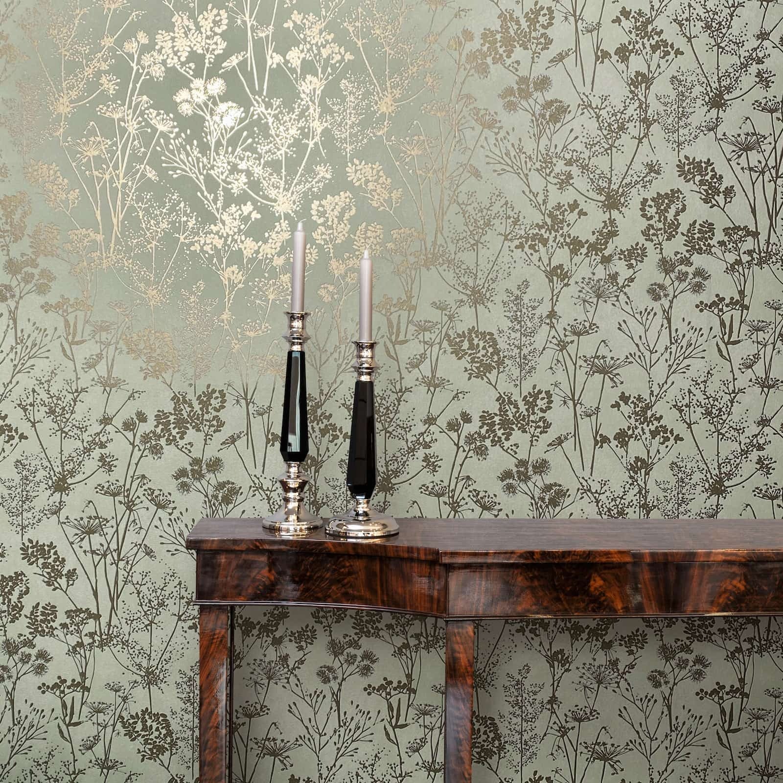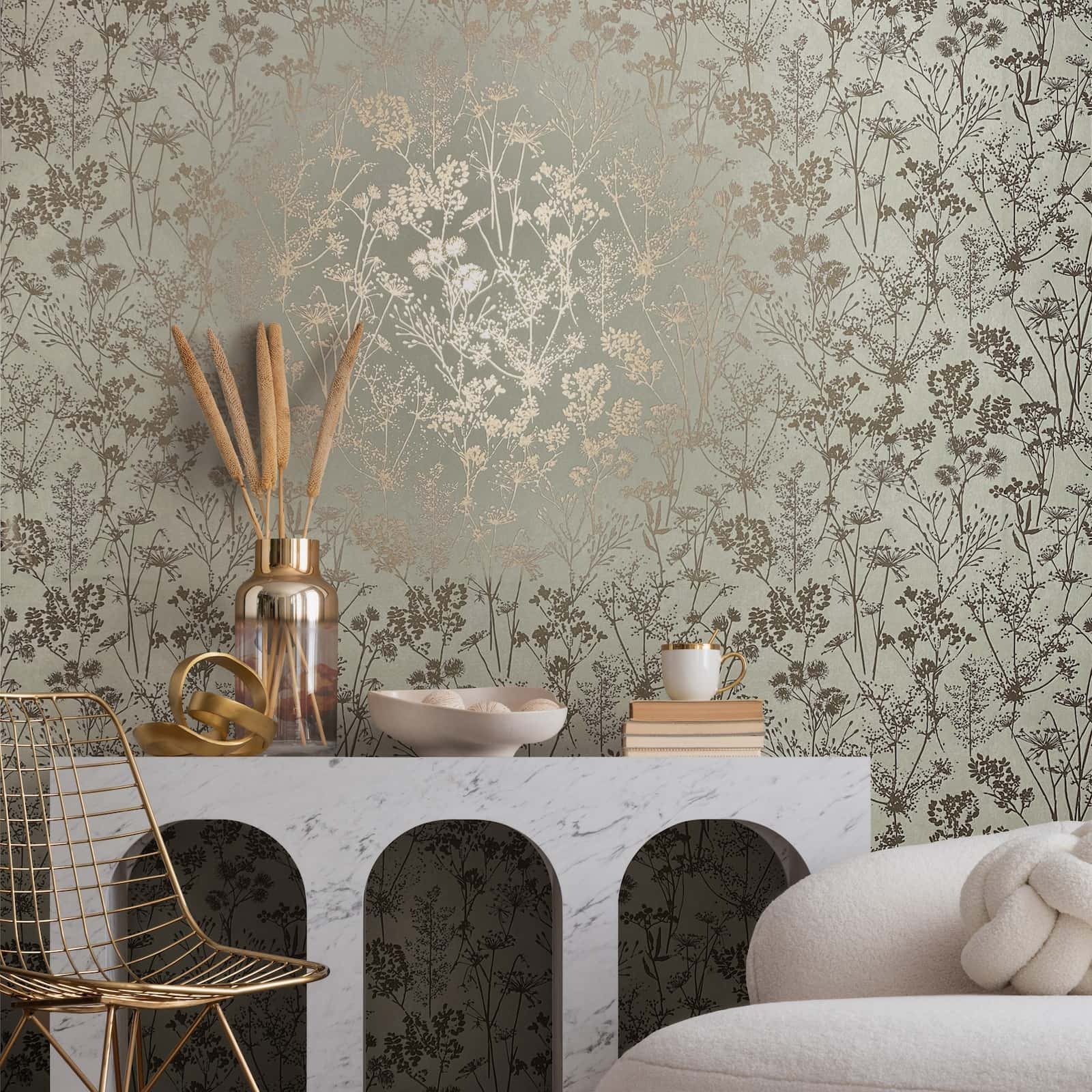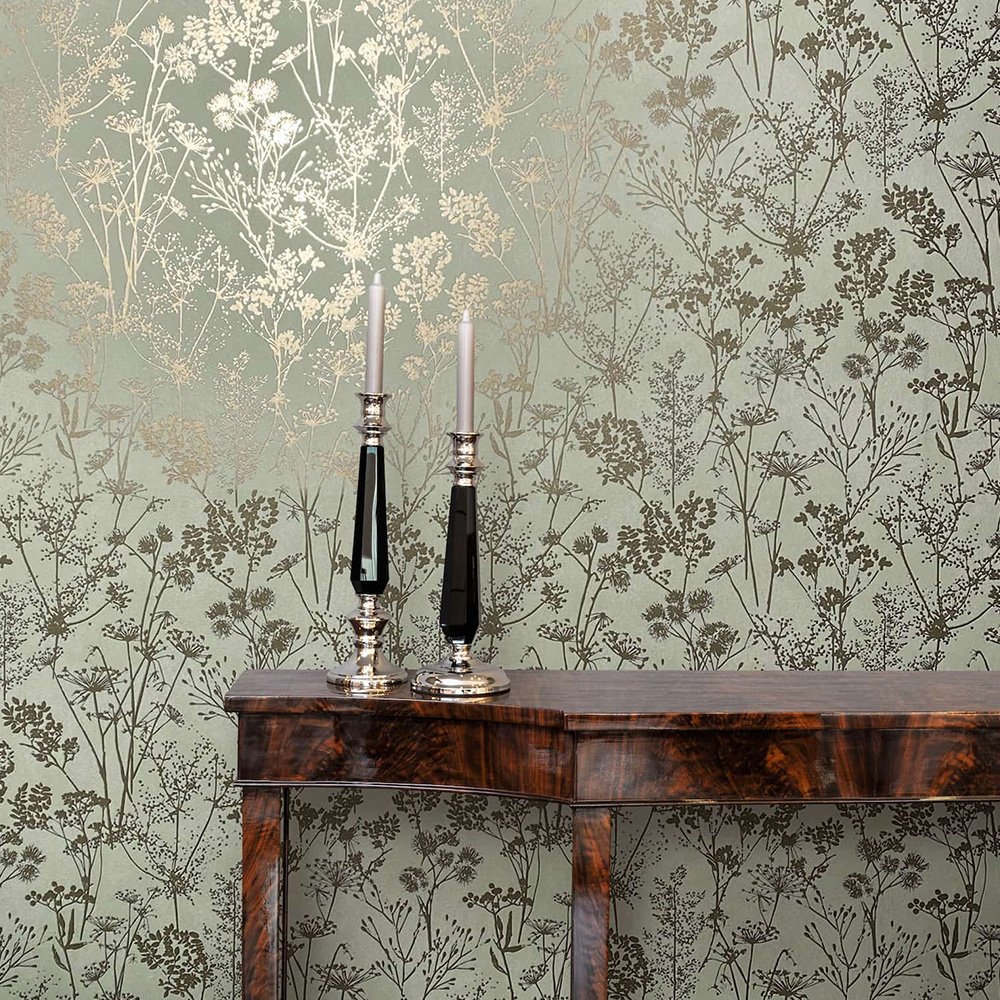 With this wallpaper from the Leyla collection by Novamur, you can easily add elegant accents to your home. The wallpaper combines high-quality materials with a modern and stylish character to give your rooms a harmonious atmosphere. The non-woven wallpaper 82465 features a floral motif with wildflowers and grasses in a Scandi style in shades of green with a metallic gold effect. Discover the other wallpapers from this collection in our shop.