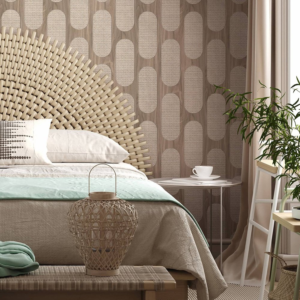 This wallpaper from the Leyla collection by Novamur combines urban chic and Mediterranean lightness and conjures up works of art on your walls. With the wallpaper you can easily bring the lifestyle of Santorini or Miami straight into your home. The non-woven wallpaper 81638 has a wood look in a vintage look with raffia inserts in grey and brown tones. Also discover the other wallpapers in this collection in our shop.