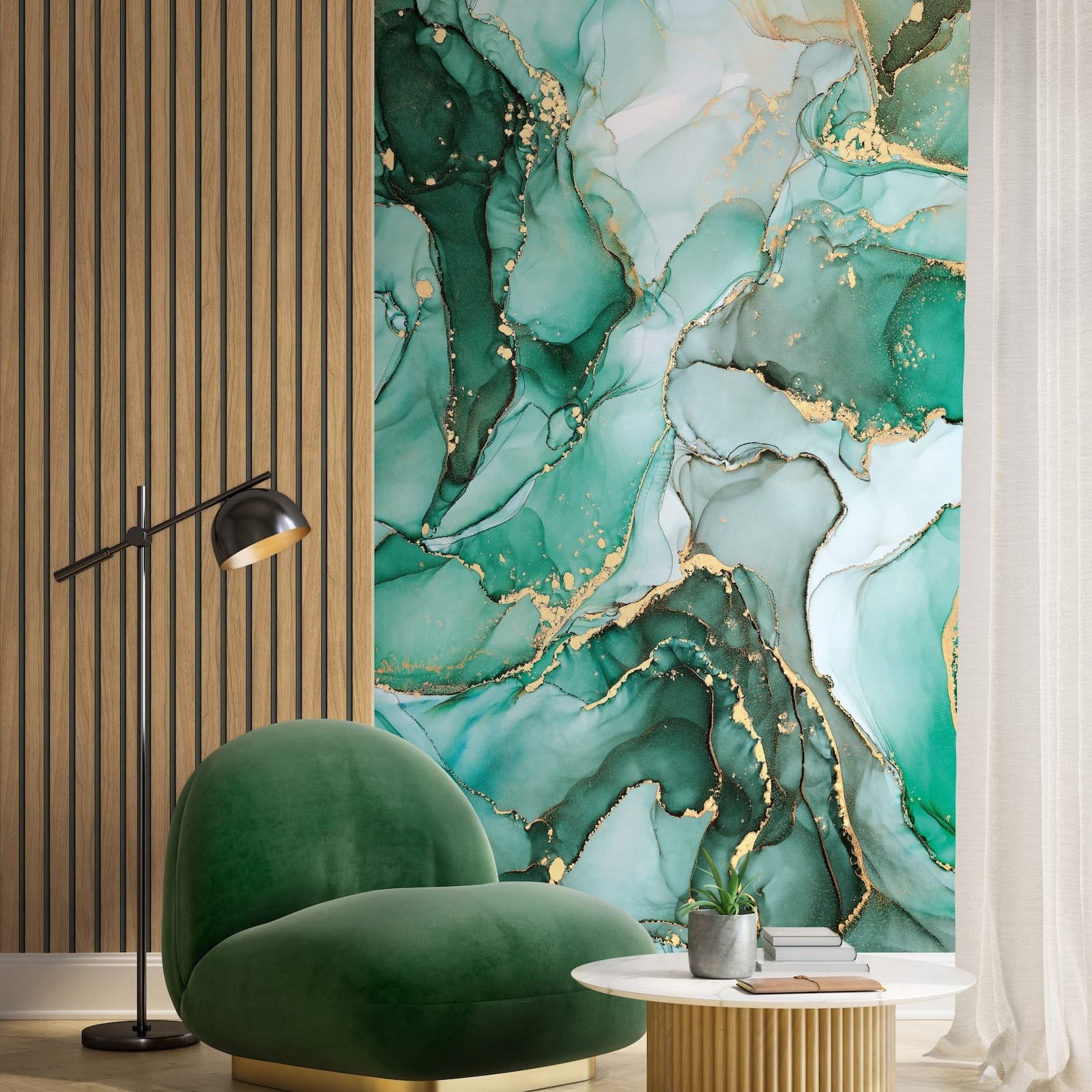 With this wallpaper from the Leyla collection by Novamur, you can easily add elegant accents to your home. The wallpaper combines high-quality materials with a modern and stylish character to give your rooms a harmonious atmosphere. The photo wallpaper 81681 features a marble look in shades of green and gold. Discover the other wallpapers from this collection in our shop.