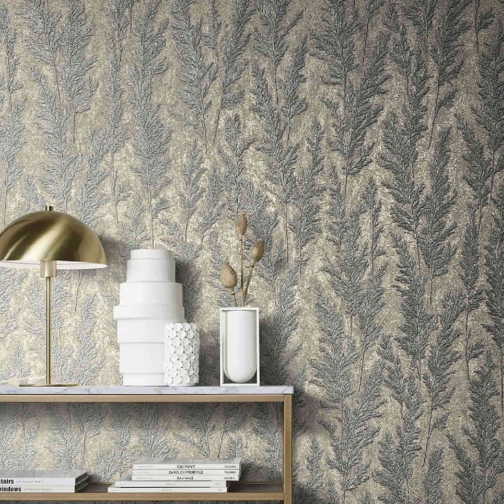 Sustainable living is an acute issue that we all need to be engaged with. Designer Felix Diener also picks up on this theme in his Natural Opulence collection. With the help of natural materials he has created wonderful patterns. The Wallpaper 85730 with grasses plants in grey, blue shimmers elegantly and invites you to relax.