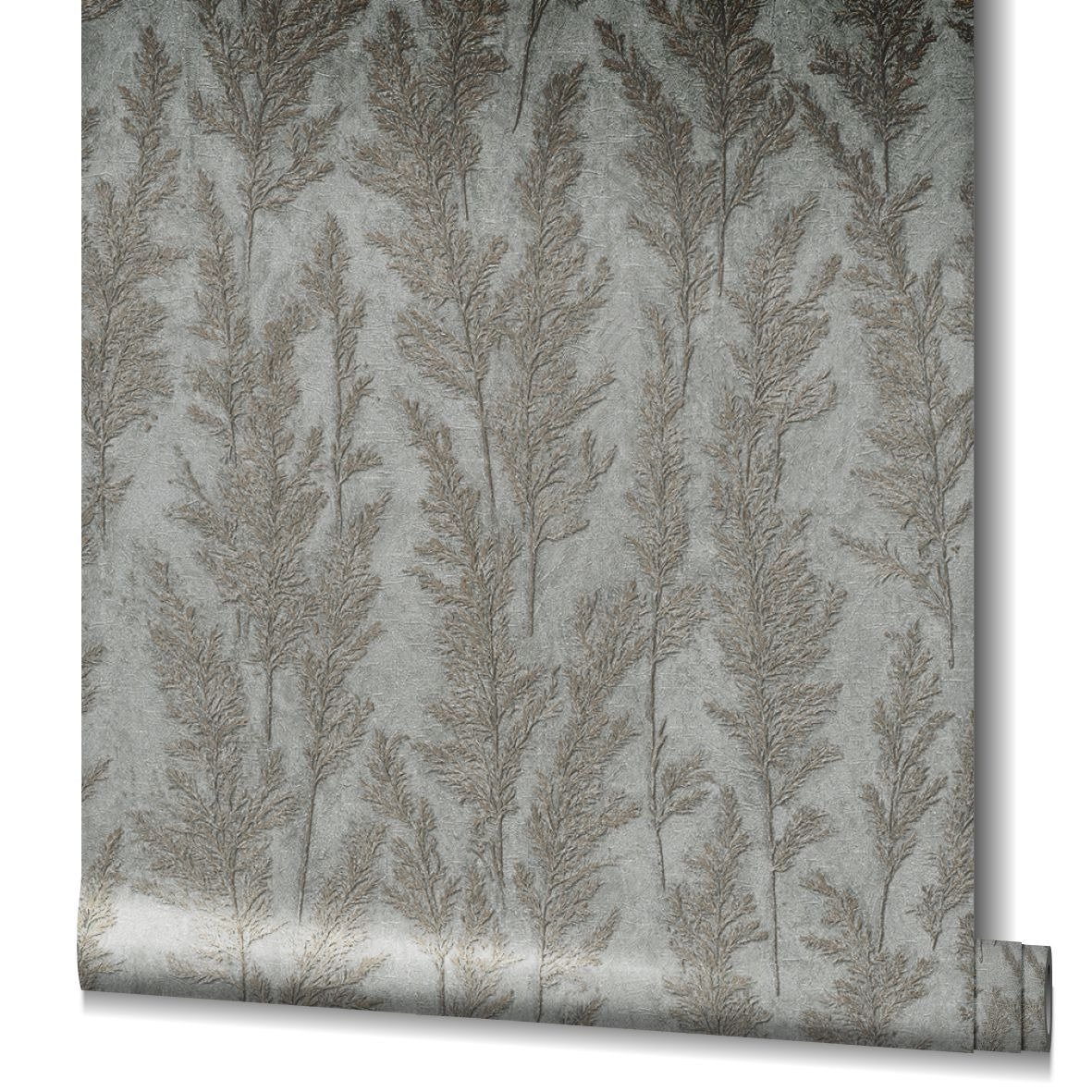 Wallpaper non-woven grass plants silver beige metallic 85733