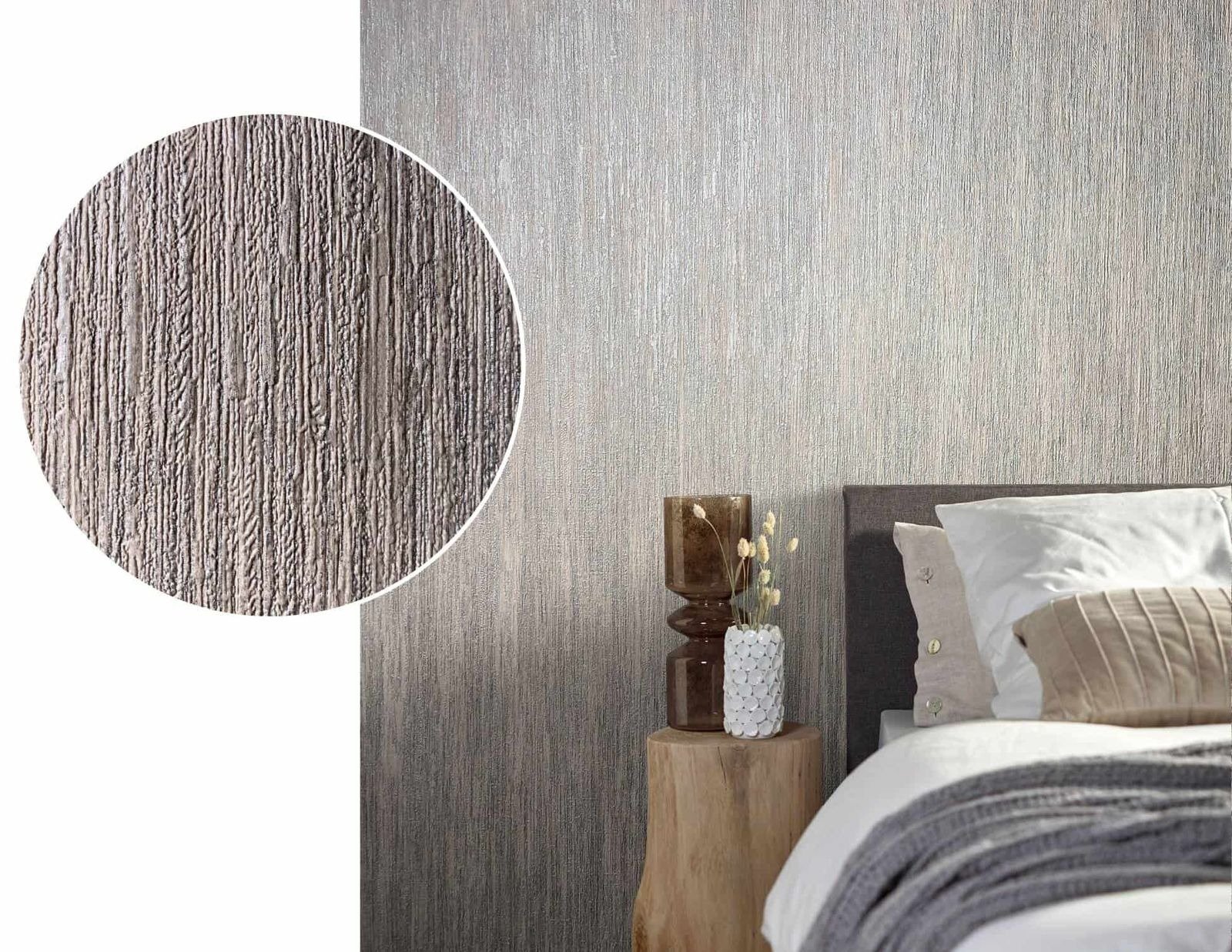 Sustainable living is an acute issue that we all need to be engaged with. Designer Felix Diener also picks up on this theme in his Natural Opulence collection. With the help of natural materials he has created wonderful patterns. The Wallpaper 85756 in plain design in greige shines elegantly in its metallic effect and invites you to relax.