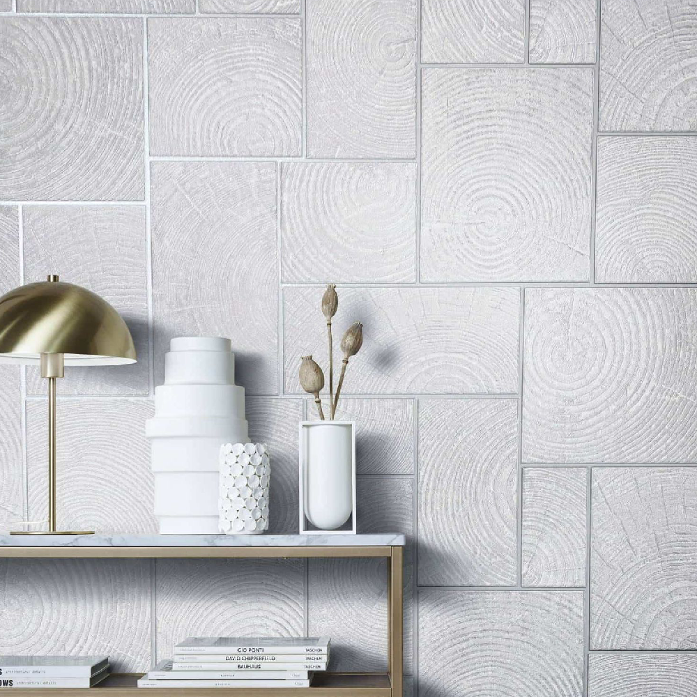 Sustainable living is an acute issue that we all need to be engaged with. Designer Felix Diener also picks up on this theme in his Natural Opulence collection. With the help of natural materials he has created wonderful patterns. The Wallpaper 85746 with wood tiles in grey-white, silver shines elegantly in its metallic effect and invites you to relax.
