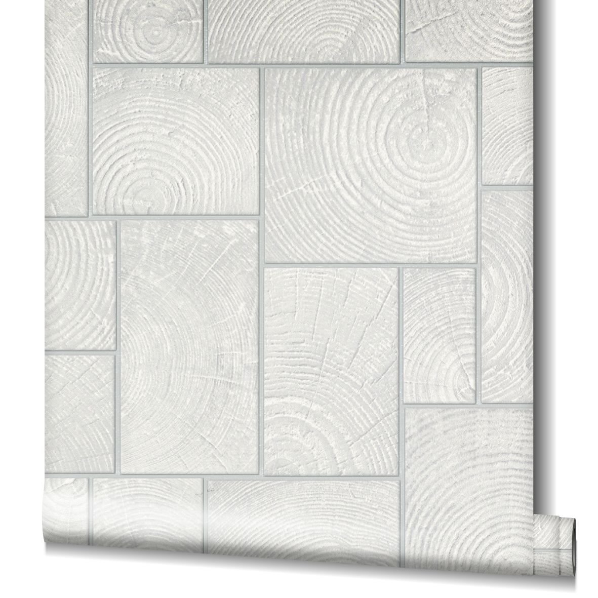 Non-Woven Wallpaper Tiles Wood Tiles grey-white silver Marburg Natural Opulence 85746